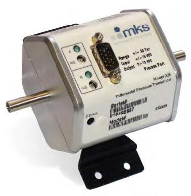 The 228A Differential Baratron® is a general-purpose differential capacitance manometer is available in full-scale measurement ranges from 0.2 to 1000 Torr, two trip relays, and can be configured with a wide variety of fittings, input/output signals, and electrical connectors. It is mounted in a rugged industrial-grade housing that minimizes external RF/EM intereference on the electronics and complies with current RoHS regulations.